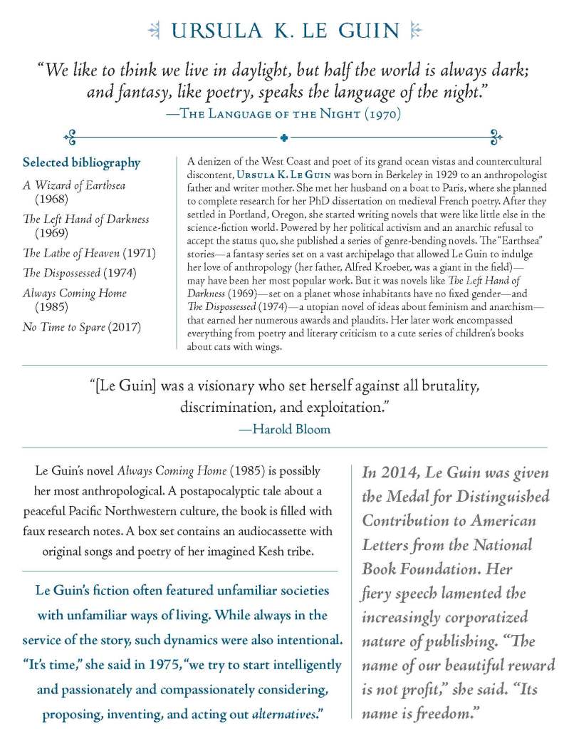 Check out the 2021 Barnes & Noble Desk Diary. Besides being a handsome hardcover edition with David Levine art throughout, it also has a wealth of short pieces about authors written by yours truly tied to the month or year a particular writer was born. There are also some longer profiles, like this one for the great Ursula K. Le Guin: