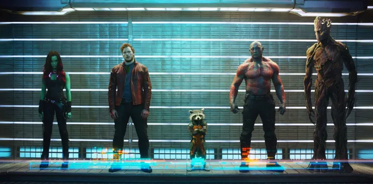 There’s a lot to appreciate — and maybe even love — about the original Guardians of the Galaxy. The eager-to-please sprawl of Gen-X references, from Mom’s ’70s pop music mixtape to hero Peter Quill (Chris Pratt, surfer-dude sly) romancing the green-skinned assassin babe Gamora (Zoe Saldana) by referencing the “legend” of Footloose. Banter threaded slyly through the action instead of airdropped in by producers demanding test-screening-approved humor beats. A talking raccoon skilled in jail-breaks and bomb-making. A genocidal villain thwarted by a dance-off. The two-hour running time, practically unheard-of brevity for modern blockbusters. David Bowie’s “Moonage Daydream”. Howard the Duck…