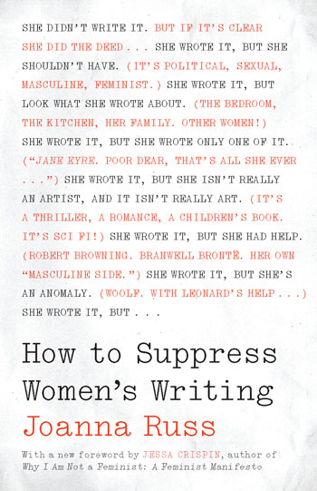 Russ, who once wrote “I will not trust anyone who isn’t angry,” later decanted her fiery feminism into the 1983 landmark study How to Suppress Women’s Writing. Reprinted in 2018, this still-relevant book lays out how the literary establishment ignores and marginalizes non-male voices. Russ boils these double standards down in the book’s most famous entry: “She wrote it but look what she wrote about becomes she wrote it, but it’s unintelligible/ badly constructed/ thin/ spasmodic/ uninteresting/ etc., a statement by no means identical with she wrote it, but I can’t understand it.”